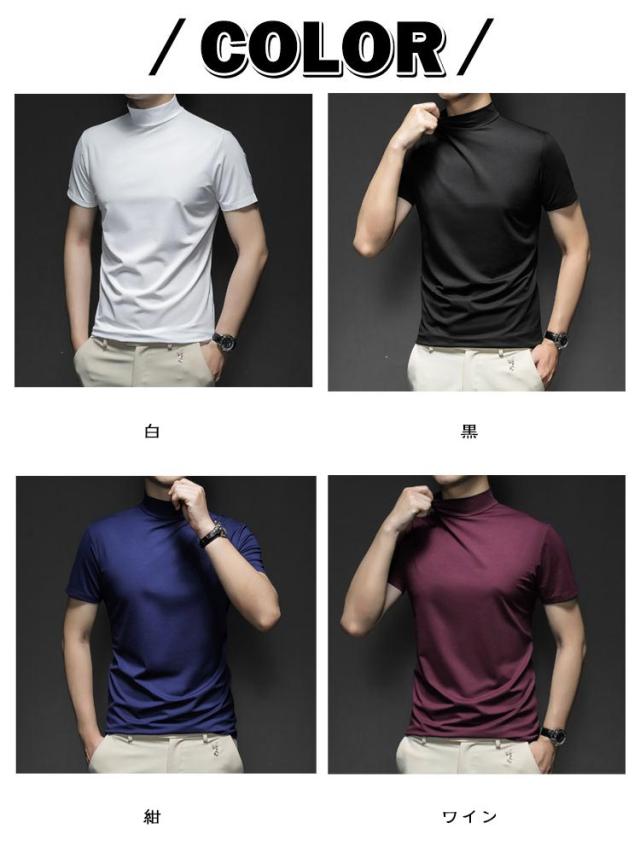 メンズtシャツ メンズ ハイネックtシャツ ストレッチ モックネックシャツ モックネック 春夏 ゴルフtシャツ 無地 Tシャツ ハイネック ゴルフウェア トップス カットソー ハイネック 半袖Tシャツ 作業着 父の日
