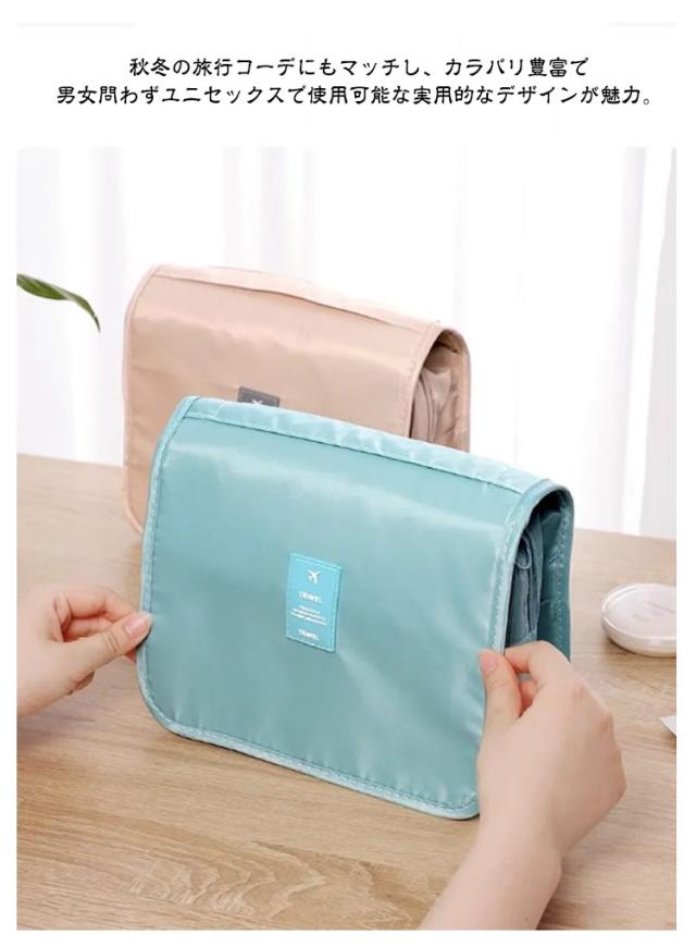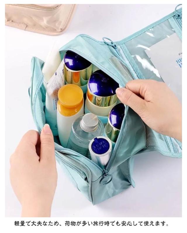 | 吊り下げ可能なトラベルポーチは、旅行や日常生活での整理整頓を快適にする多機能アイテム。 たっぷり入るサイズ感で、化粧品やスキンケア用品、充電ケーブルや小物までまとめて収納可能。 シンプルなデザインながら、ハンドルが付いているため持ち運びが簡単で、スーツケースやバッグの中での出し入れもスムーズ。 軽量で撥水加工したの素材製。 秋冬の旅行コーデにもマッチし、カラバリ豊富で男女問わずユニセックスで使用可能な実用的なデザインが魅力。 ハンドル付きトラベルポーチで、移動中も整理整頓を楽しもう。 軽量で丈夫なため、荷物が多い旅行時でも安心して使えます。 プレゼントにも最適な便利アイテムです! | |