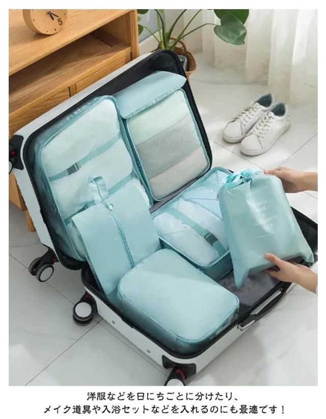 | 旅行にぴったりなトラベルポーチのセット。 シンプルで使いやすいなデザインが◎ 洋服などを日にちごとに分けたり、メイク道具や入浴セットなどを入れるのにも最適です! スーツケースの中身をスッキリ整理可能! トラベルアイテムを快適にサポーティングしてくれる様々なタイプのポーチが7点セットになったアイテムが登場。 傷みにくく、シワになりにくいポリエステルを使用したテクスチャーで、移動の多いアクティブな旅にも最適なひと品です。 コスメ、スキンケアなどを小分けにするのは勿論、下着などオブラードに運びたい物にもお勧め。 単品使いでデイリー使用ももちろんOKです! 洋服などを日にちごとに分けたり、入浴セットなどを入れるのにも最適です! カバンの整理やちょっとしたお出掛け用のポーチとしてもご使用頂けます! | |