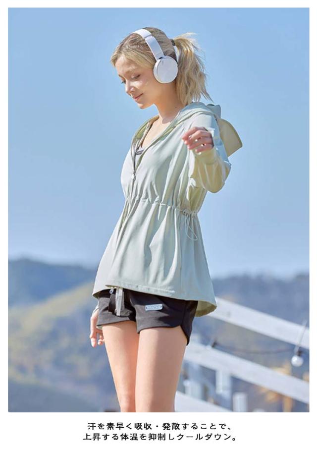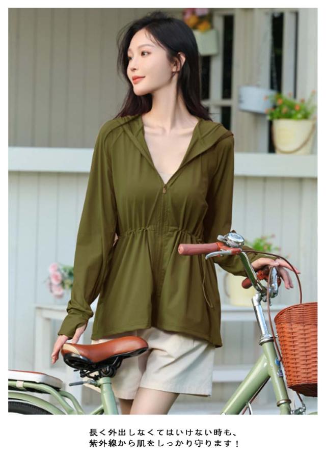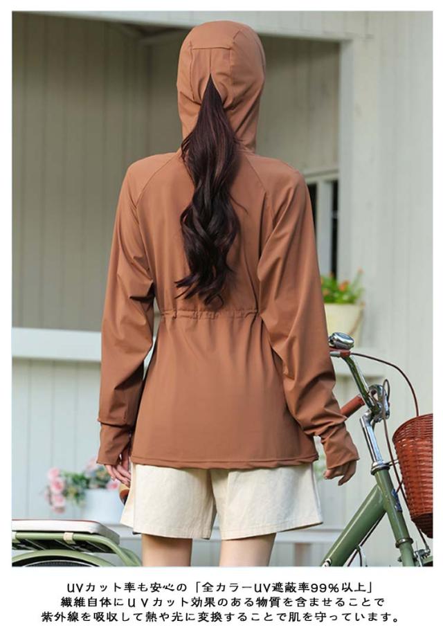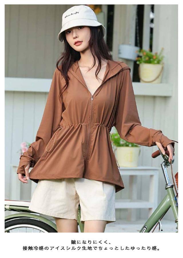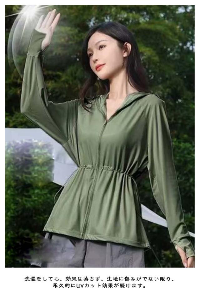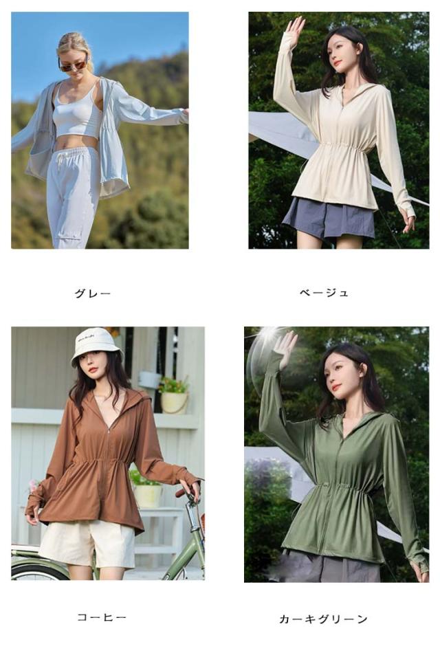 レディース 冷感 吸汗 手袋 UV パーカー マスク ラッシュガード UVカット UVパーカー 接触冷感 紫外線対策 指穴 つば付き ポニーテール ウエストゴム 調整可能 UPF50+ 速乾 UVケア UPF50+ フード付き トップス アウター 薄手
