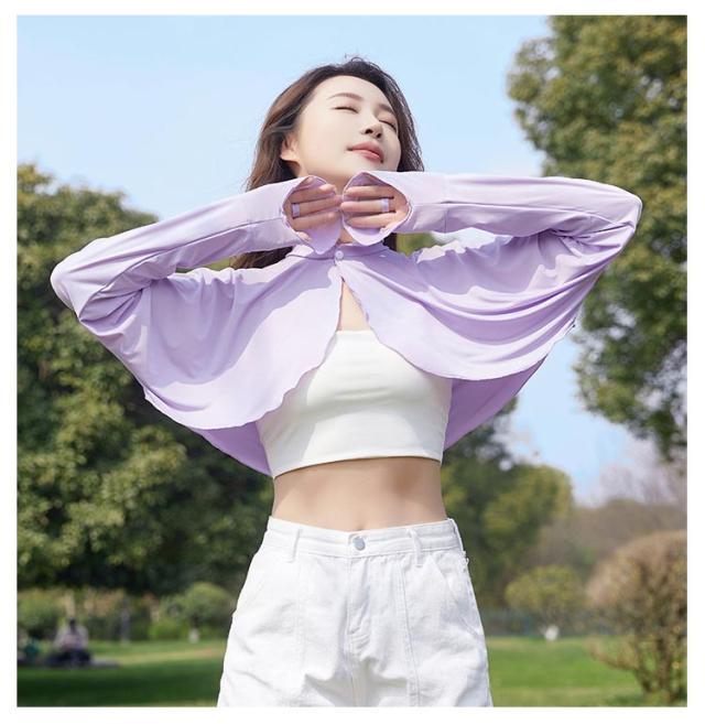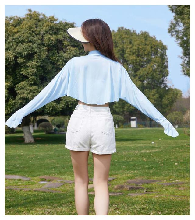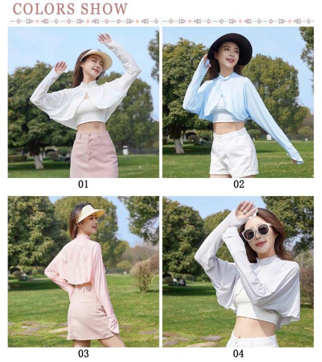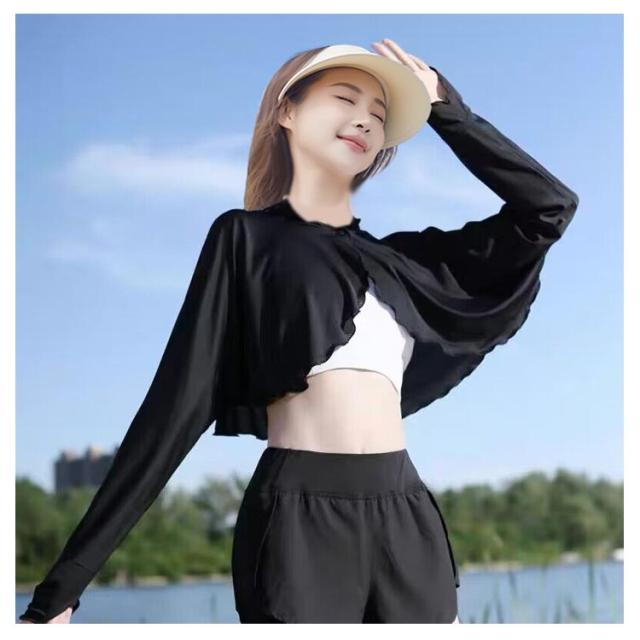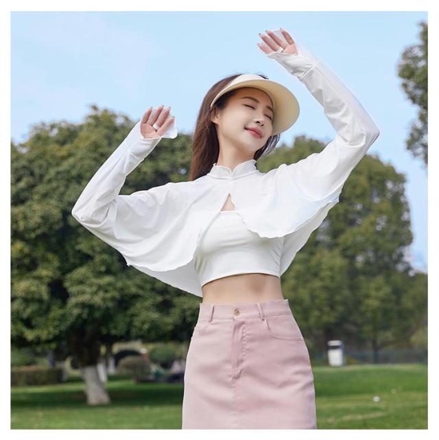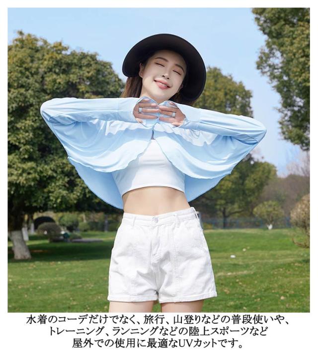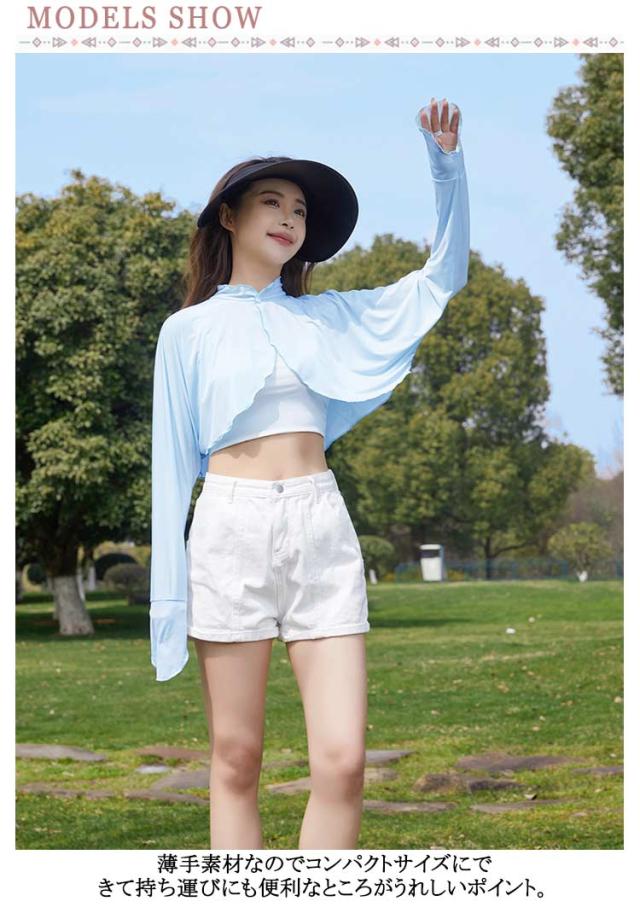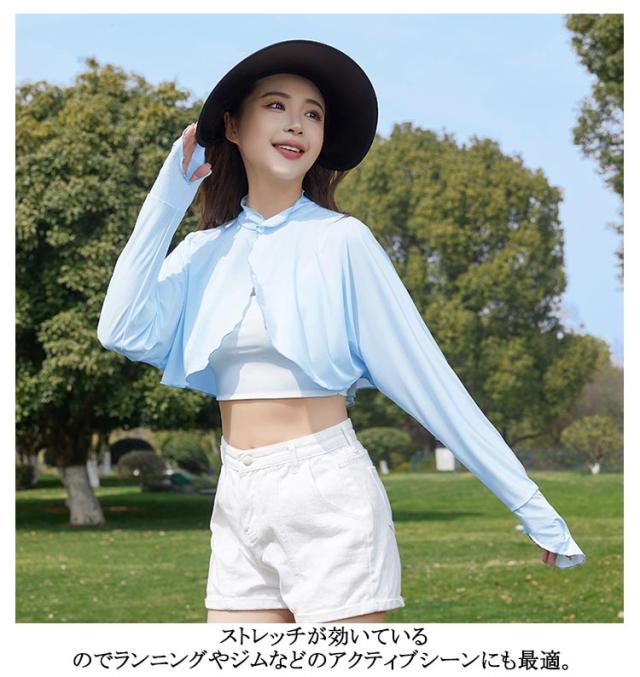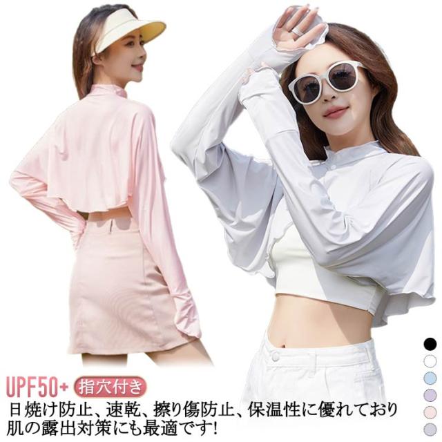 UPF50+ 裾フリル 立ち襟 可愛い パーカー 指穴 立ち襟 長袖 ケープ 着る ゆったり 冷感 服 立ち襟 トップス 体型カバー ボレロ 吸汗 速乾 日焼け防止 ラッシュガード スポーツ ゴルフ UVカット