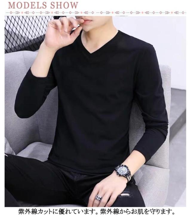 インナーシャツ 夏 Tシャツ インナーシャツ アイスシルク 長袖 涼しい 長袖tシャツ 3枚セット 野球 トップス メンズ 薄手 ストレッチ 接触冷感 tシャツ インナーシャツ 吸水速乾 作業着 トレーニングウェア ゴルフ Vネック 大きいサイズ バイク 釣り キャンプ スポーツ