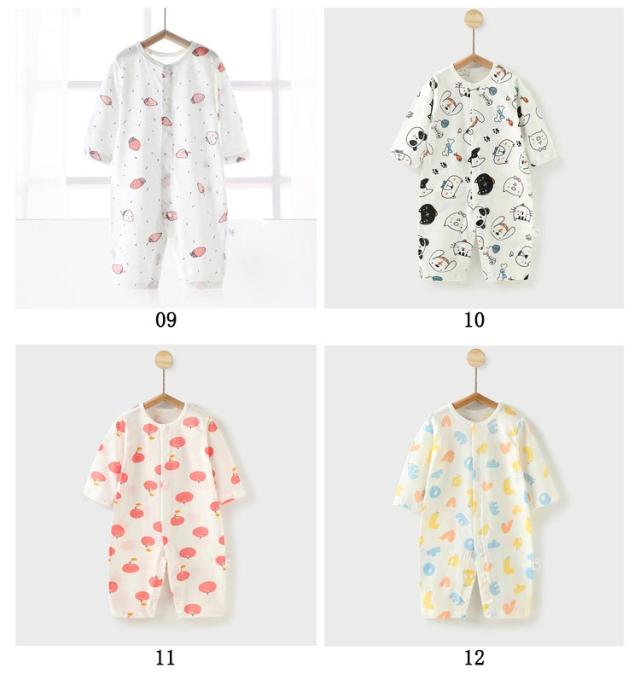 | 【春夏 綿 薄手ロンパース】【全15色】 総柄のプリントが可愛いロンパース。 肌触りのいいコットンながら吸汗速乾性に優れているため、汗をかきやすいベビーでも快適。 前開きでお着替え簡単! | |