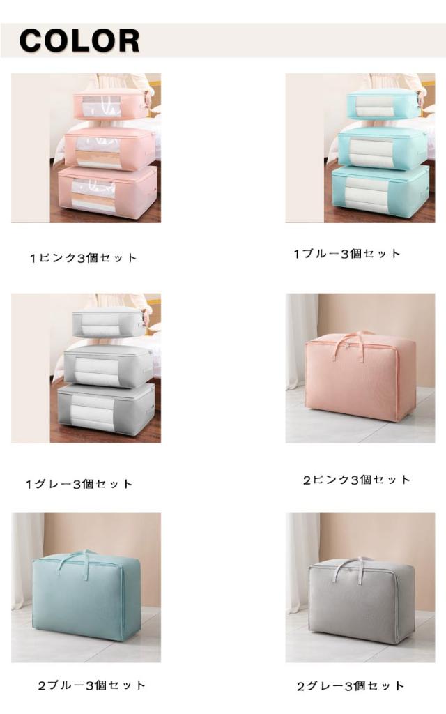 | 色 | 1ピンク3個セット 1ブルー3個セット 1グレー3個セット 2ピンク3個セット 2ブルー3個セット 2グレー3個セット |