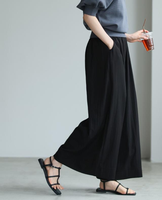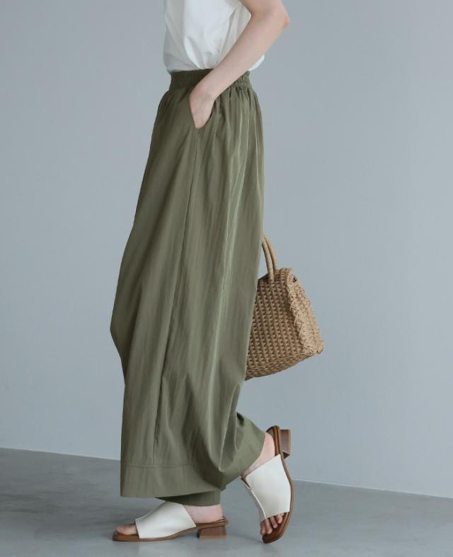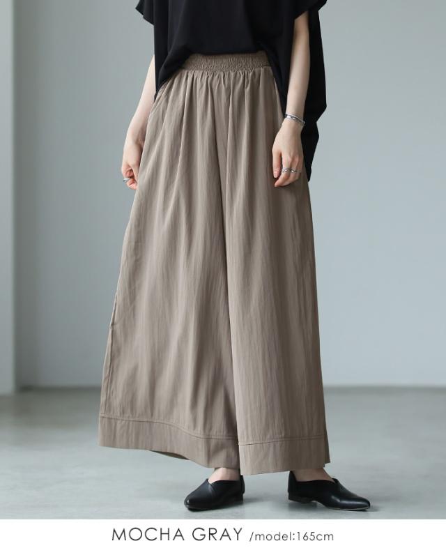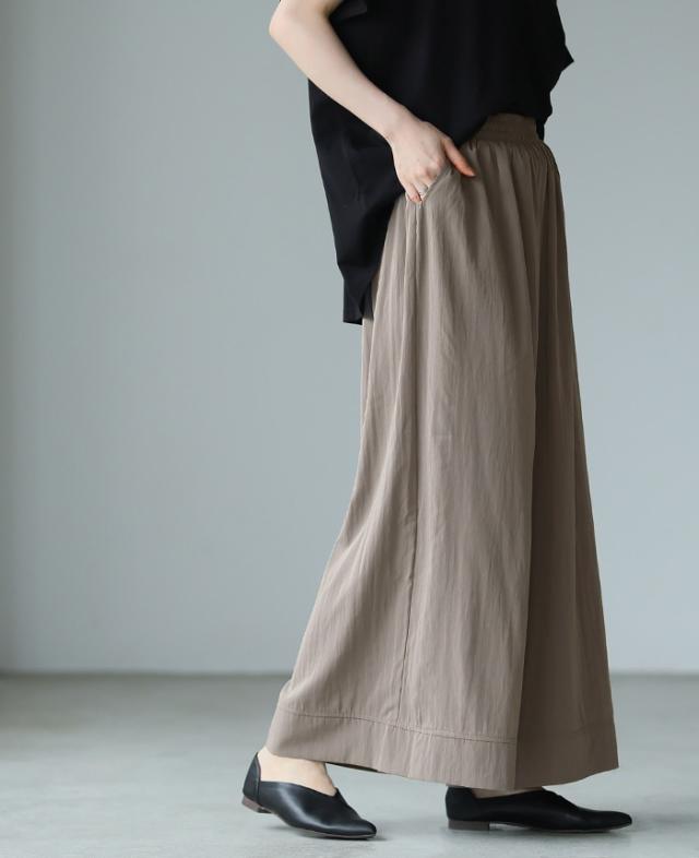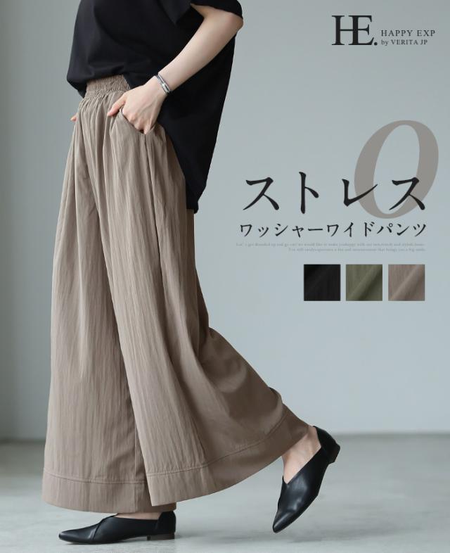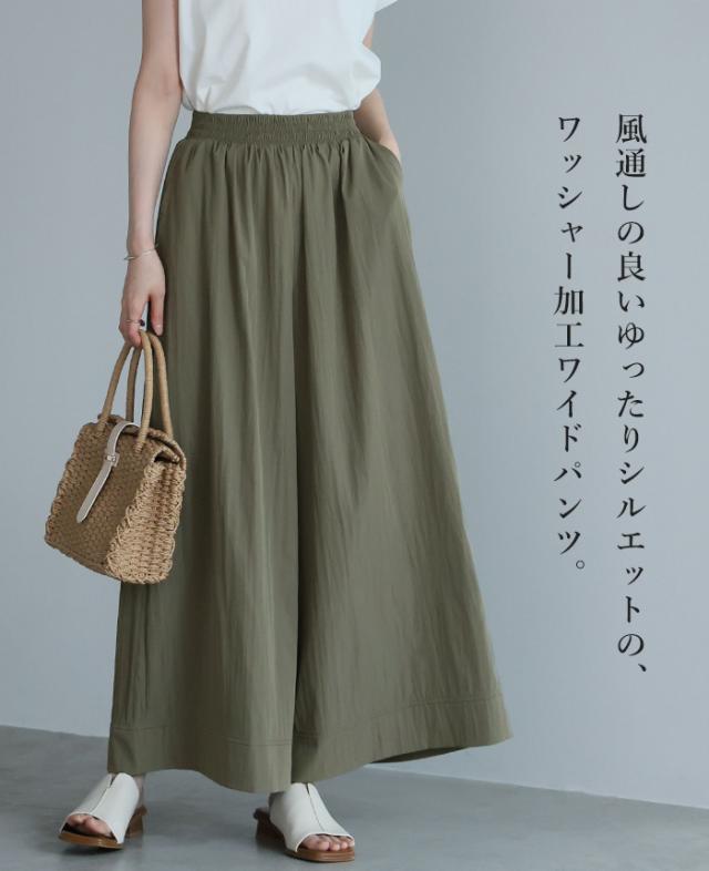 ナチュラルワッシャー ワイドパンツ レディース 涼しい ゆったり 体型カバー 春 夏 秋 美脚 楽ちん 大人 ナチュラル 無地 ゴムウエスト ポケット付き きれいめ ママ服【メール便不可】