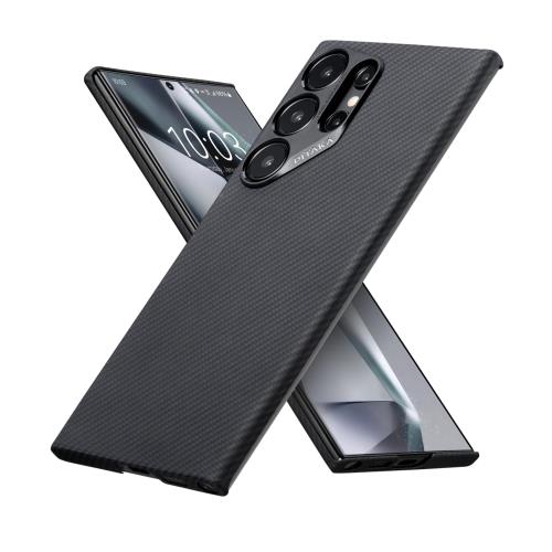 「PITAKA」Galaxy S24 Ultra ケース アラミド繊維製 高級なカーボン風 超薄 超軽量 耐衝撃 ミニマリスト シンプル デザイン ワイヤレス充電 対応 カバー (黒/グレーツイル柄)