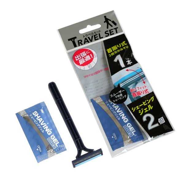 首振り式2枚刃かみそり トラベルセット シェービングジェル付 (100円ショップ 100円均一 100均一 100均)