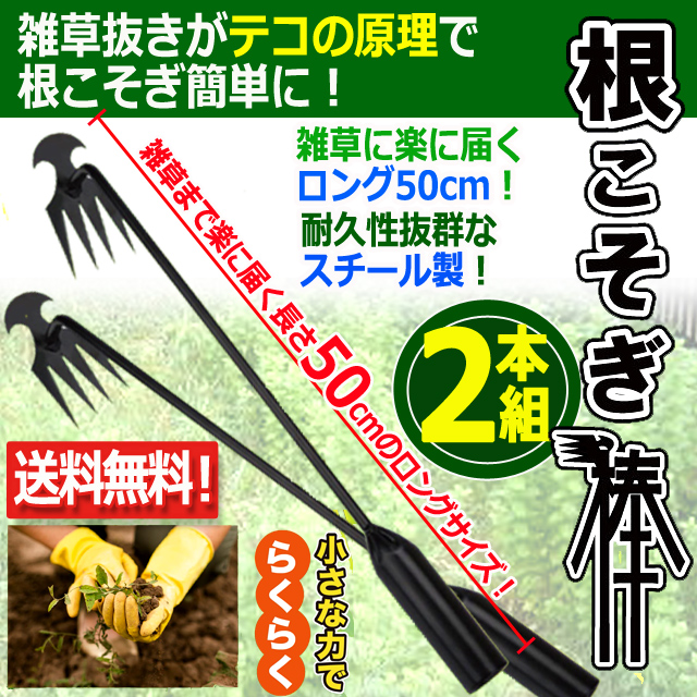 2本組 釘抜きのようにラクラク抜けるロング50cm!雑草根こそぎ棒2本組 テコの原理 固い土壌 蔓延る根っ子 スチール製 庭 花壇 耕具 草取り