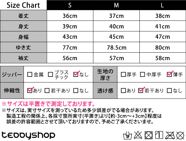 製造工程の関係上、各採寸箇所実寸(平置き)より【約-3cm〜+3cm】程度は