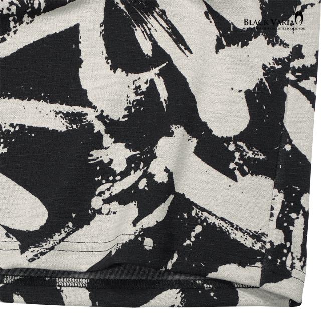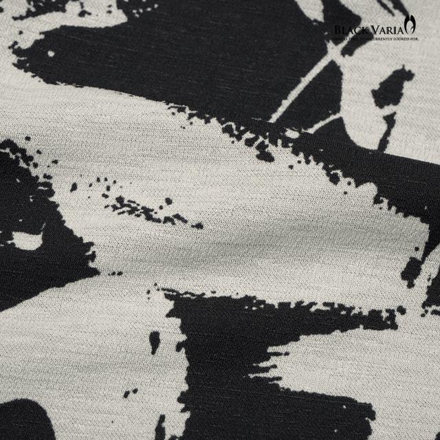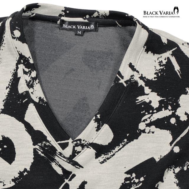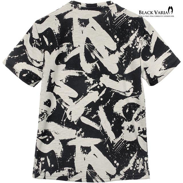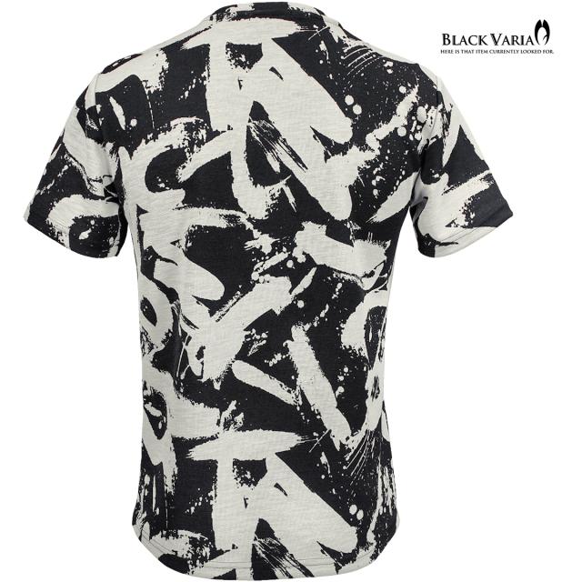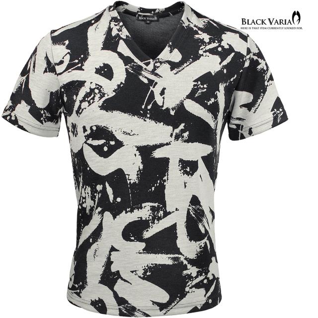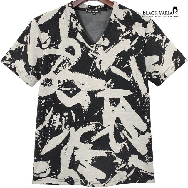 メール便可/1枚まで Tシャツ 半袖 Vネック 総柄 メンズ 和柄 ペイント グラフィティー スリム ストレッチ(ホワイト白ブラック黒) 252310