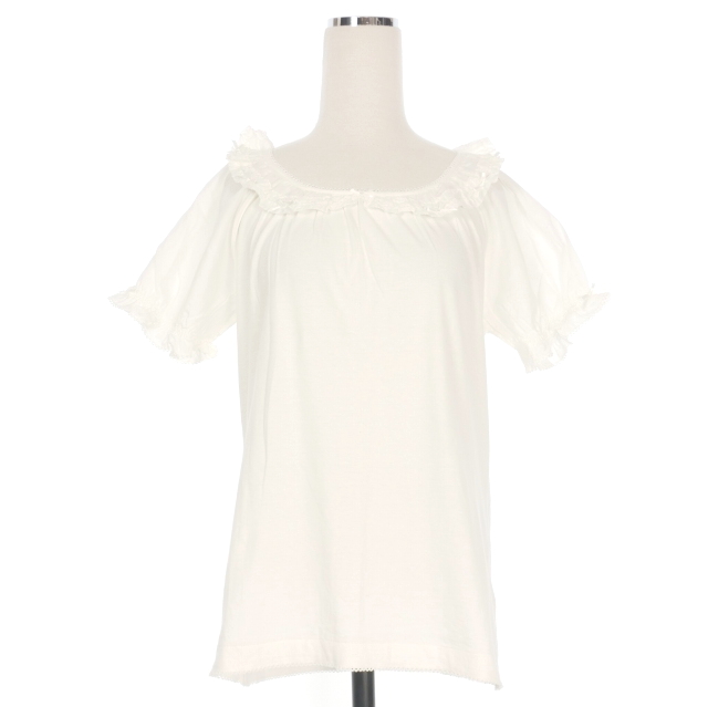 【中古】ピンクハウス PINK HOUSE ピコ加工 首元フリルシャツ ブラウス パフスリーブ 半袖 L ホワイト 白 P013NUAL20B レディース