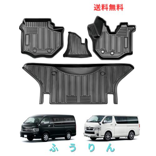 1. 【適合車種】トヨタハイエース200系1/2/3/4/5/6型。標準ナロー車TRH/KDH 2系。年式:2004年〜現行 【セット内容】運転席用:1枚、 助手席用:1枚、 センターフロアマット:1枚、2列目用:1枚。