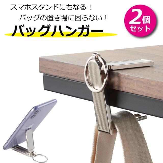 バッグハンガー 2個セット バッグフック カバン掛け キーホルダー スマホスタンド 2way テーブル デスク カフェ 小物 便利グッズ 送料無料 ポイント消化 シルバー 雑貨 プチギフト