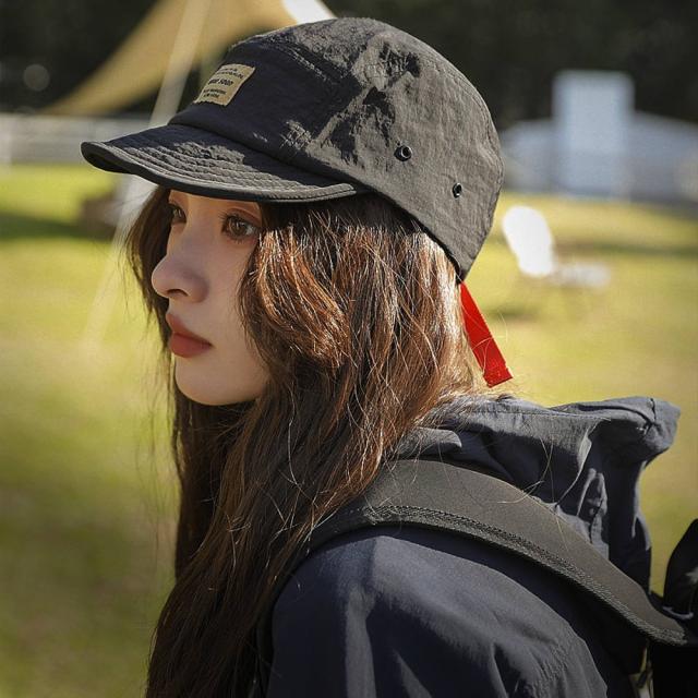 ポリエステル 100%軽くてどんなスタイルでも合わせやすいツバが短いタイプのキャップ