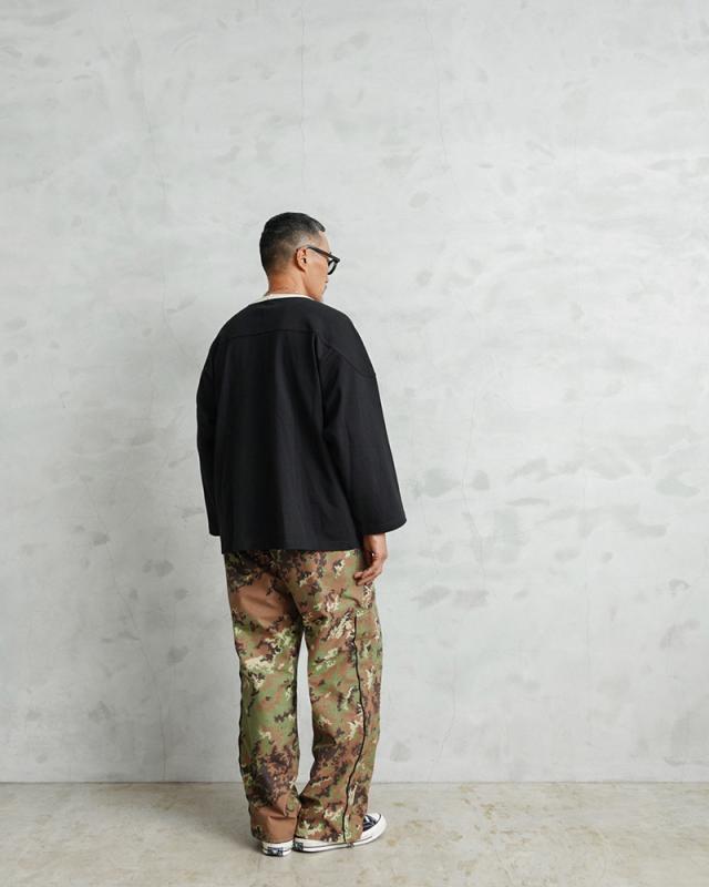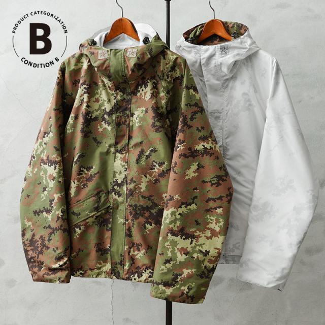 イタリア軍より2005年モデルの透湿性防水リバーシブルパンツが入荷しました!表地にはベジタトカモ、裏地には北極迷彩のような意味で呼ばれるスノーカモが使用されています。2通りで使えるリバーシブル仕様に優れた機能性を備えたデザインは、様々なファッションや、あらゆるアウトドアシーンにも対応します。