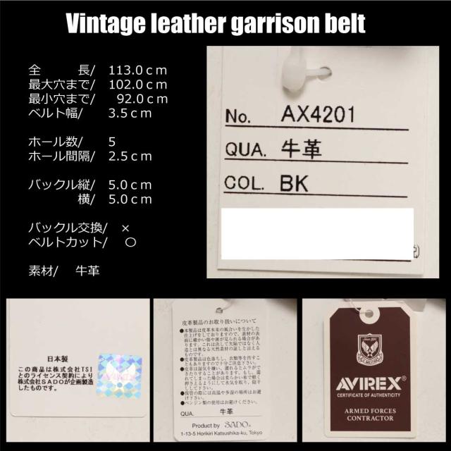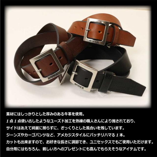 AVIREX アヴィレックス アビレックス ベルト AX4201 ヴィンテージ加工 ギャリソン ロゴ入り美錠 レザーベルト 本革 カジュアルベルト カット可 日本製