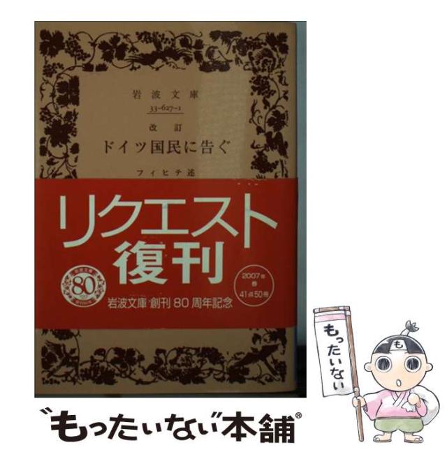 商品名:【中古】 ドイツ國民に告ぐ 改訂版 (岩波文庫 266-267a, 青(33)627-1) / フィヒテ述、大津康譯 / 岩波書店 [文庫]【メール便送料無料】