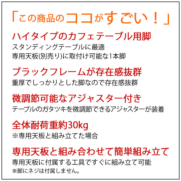 1本脚 テーブル脚 カフェテーブル用 高さ約90cm アジャスター付(※天板別売り) の説明