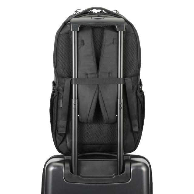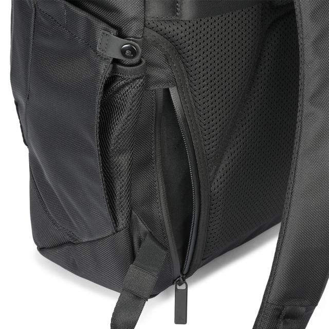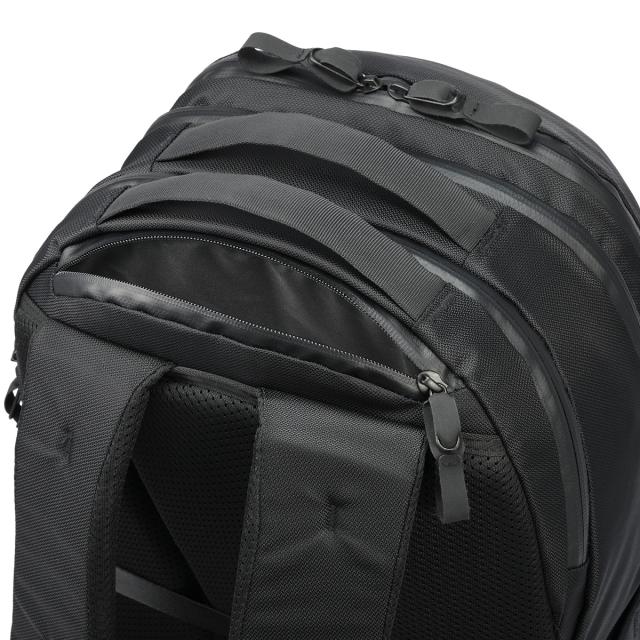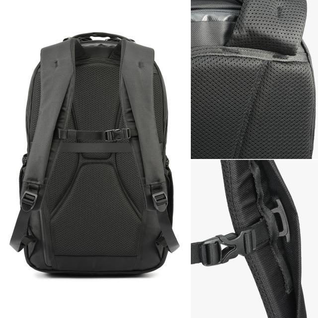 背胴とショルダーパッド裏面には通気性の良いエアメッシュ素材を採用。長時間の移動でも蒸れにくく、夏場でも快適に使用できます。