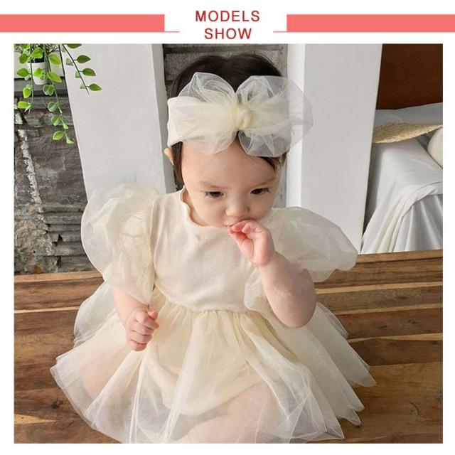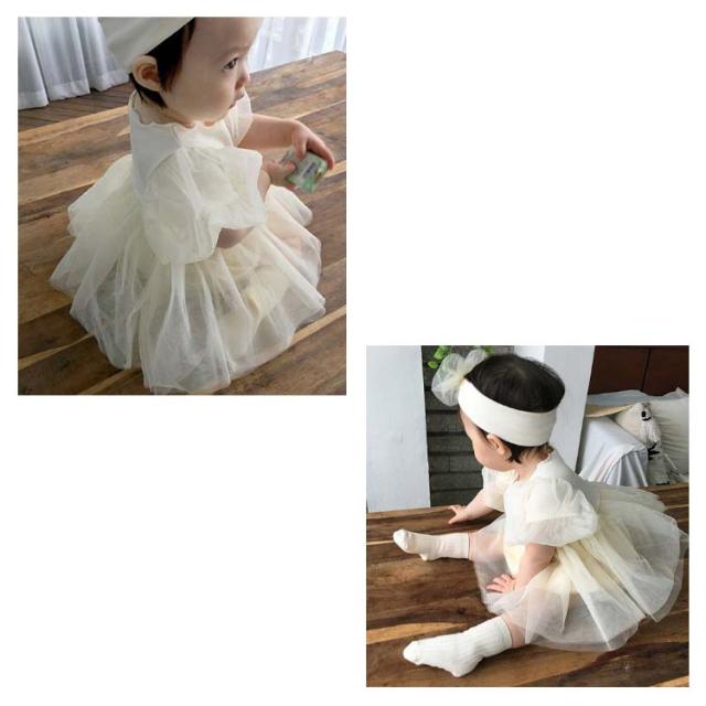 ベビー ワンピース ロンパース 女の子 入園式 半袖 ベビードレス ワンピース ベビー服 チュール セレモニードレス お宮参り 新生児 ヘアバンド セレモニードレス フォーマル 結婚式 赤ちゃん 1歳 誕生日 出産祝い 贈り物 66cm 73cm 80cm 90cm 送料無料