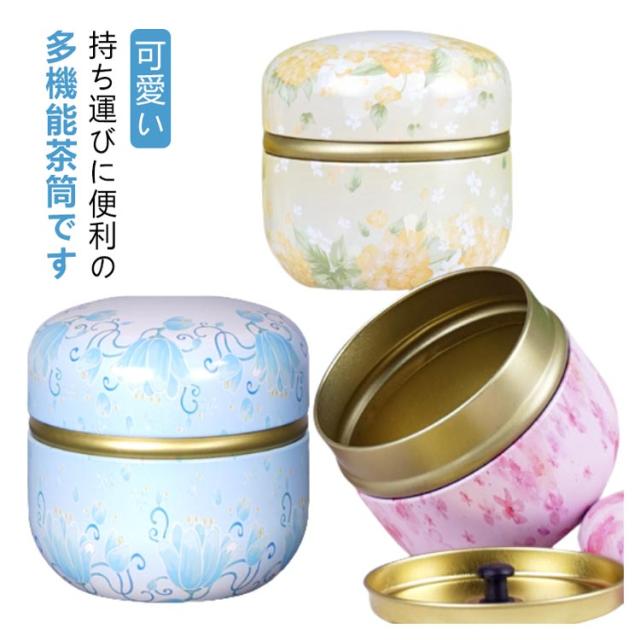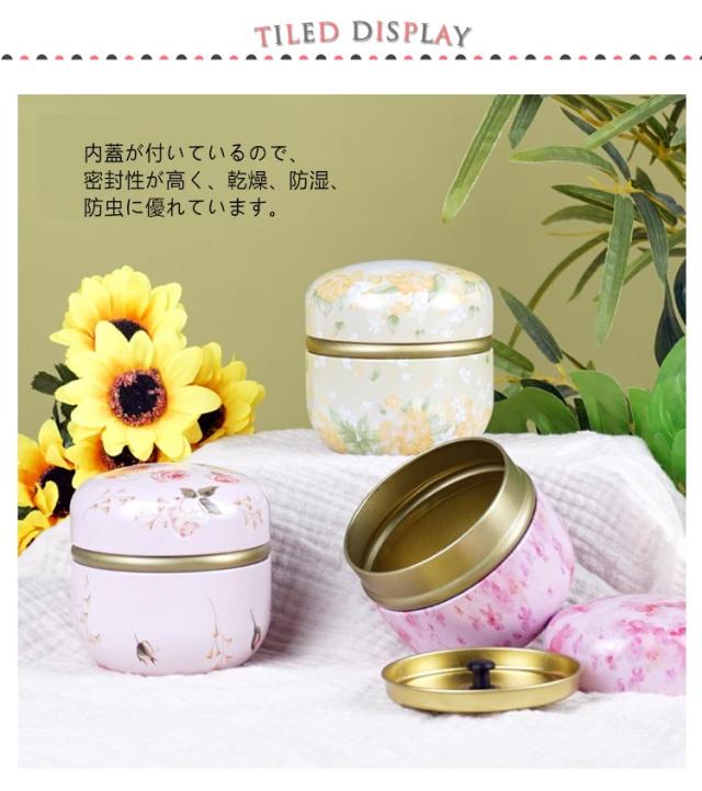 内蓋付き 密封容器 茶缶 茶容器 保存缶 砂糖 小型 茶筒 茶の葉 防湿 茶缶 香料 和柄 花柄 家庭用 キッチン用品 持ち運び お菓子 紅茶 コーヒー 可愛い