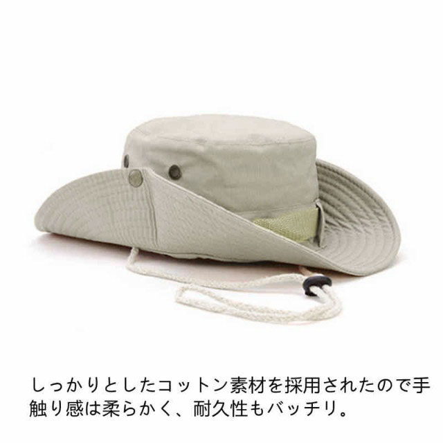 | アウトドアに最適なハットです しっかりとしたコットン素材を採用されたので手触り感は柔らかく、耐久性もバッチリ。 紫外線対策としても便利で、折り畳んでかばんに収納することもできます♪ 両サイドにはメッシュの通気口があるので蒸れにくく、快適に過ごせます サイズ調整ができる、アジャスター付きサイズのお悩みを解決 海水浴、旅行、登山、フェスなどアウトドアシーンにピッタリな手洗いもできるハットです | |