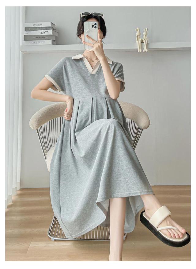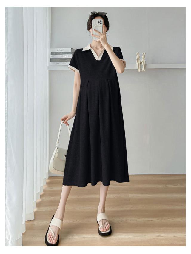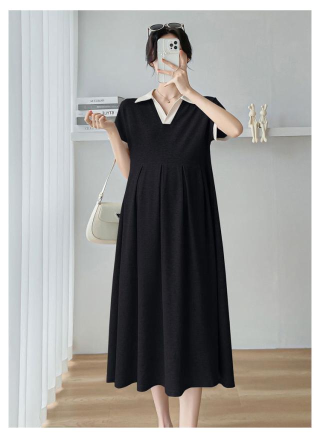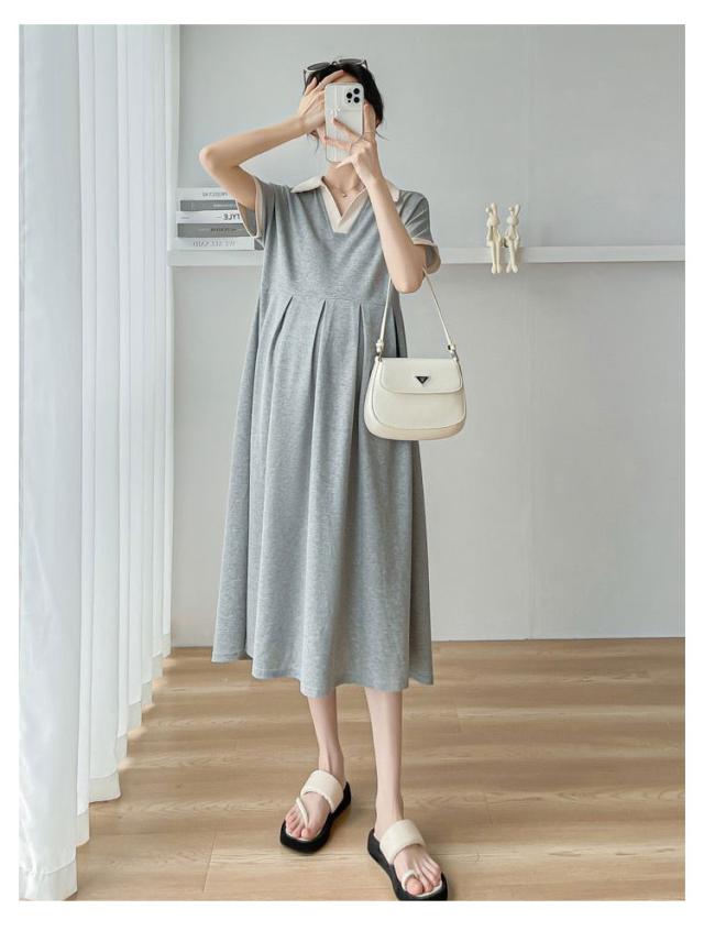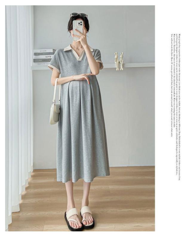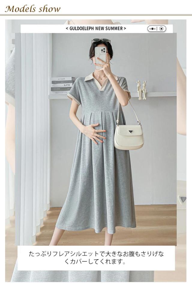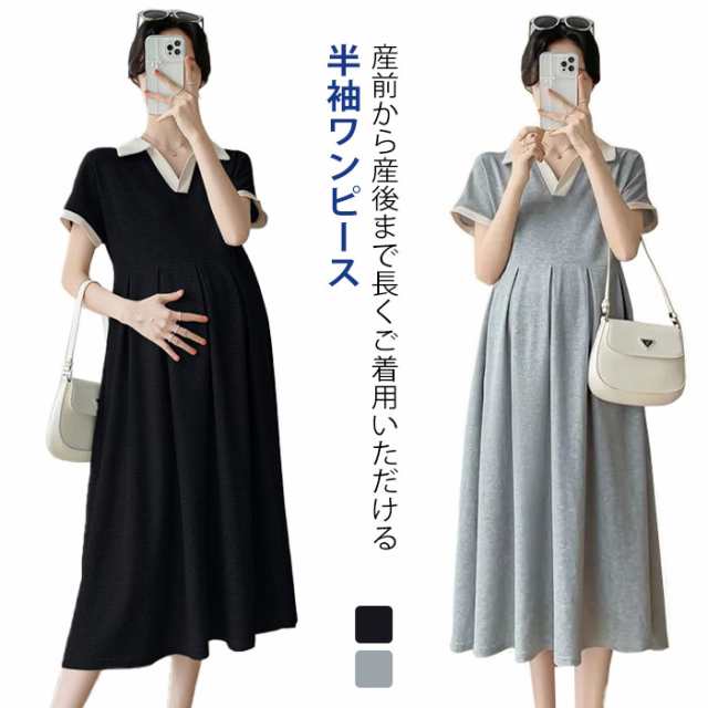 妊婦服 授乳服 半袖 マタニティウエア 薄手 ポロワンピース 産後 産前 半袖 ワンピース ロング 春夏 マタニティー 通気性 快適 柔らかい ゆったり 大きいサイズ