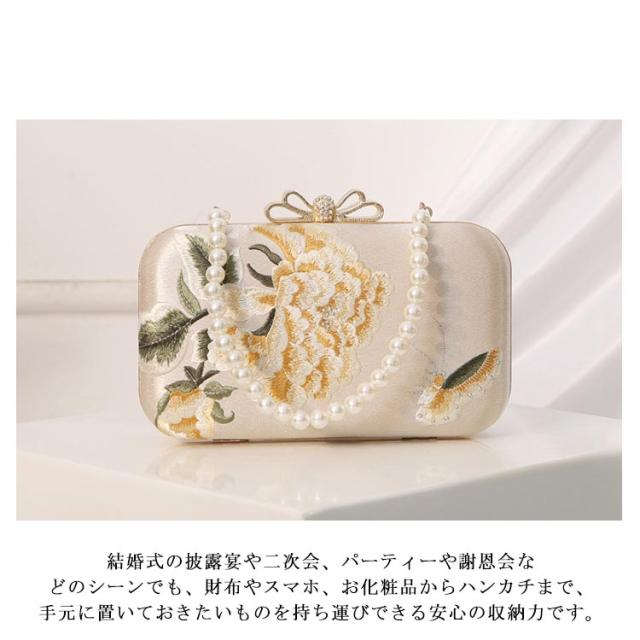 パーティーバッグ 花柄 刺? ハンドバッグ パール ハンドル がま口 クラッチバッグ 結婚式 バッグ ショルダー レディース サテン パーティ バッグ スクエア型 お呼ばれ 二次会 披露宴 謝恩会 おしゃれ レトロ エレガント 黒 ベージュ 【送無】