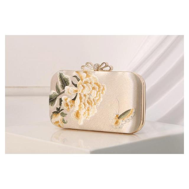 | レトロ風のある花柄刺?と艶やかなサテン生地が上品な印象のクラッチバッグ。 蝶とボリュームの牡丹の花がレトロ風な雰囲気と華やかさがアップ。 付属のチェーンを付ければ、ショルダースタイルにも変えられる2way仕様。 結婚式の披露宴や二次会、パーティーや謝恩会などのシーンでも、財布やスマホ、お化粧品からハンカチまで、手元に置いておきたいものを持ち運びできる安心の収納力です。 | |