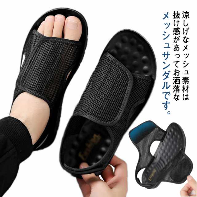 マジックテープで調節可能、甲高の方におすすめ!ビーチサンダル メンズ メッシュ スポーツサンダル 軽量 速乾 滑り止め フラットシューズ 水陸両用 滑りにくい 24.0-27.0cm