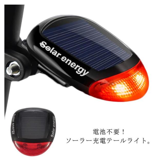 送料無料 ソーラー充電 LEDライト 自転車 テールライト 電池不要 明るい ソーラーサイクルリアライト 防水 自転車ライト 夜間 ソーラーライト サイクルライト