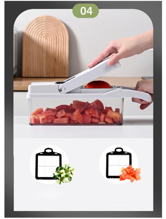 | 一つ持っておくと、毎日の料理が楽しくなります! 多機能スライサー:2mm薄切りプレート(スライス)、2mmフィラメント刃、4mm太フィラメント刃、波状スライス刃、11*11mmスライスを切る、6*6mm小さな角切り、卵白分離器、粉砕刃は、1分以内に異なる野菜切断要件を満たすことができます。簡単に食べ物を理想的な形や大きさに切ることができます。 8つの刃を自由に切り替えることができて、あなたが簡単に千切りを切ることができて、スライスと野菜を切ることができて、内蔵スライスボックスはあなたが直接1リットルの箱の中で実物を集めることができて、ナイフとまな板を汚すことがなくて、この8つのセットはあなたのすべての台所道具の中で最も好きです 簡単な清潔:すべての部品を簡単に取り外し、収納ボックス付き、使用後はブレードとミクロトームを水で洗い流すことができ、簡単に掃除できます。食器洗い機にはブレード、スライサー、フードラックが使用可能であり、簡単に分解できて、迅速な洗浄が出来ます。刃が鋭いので気をつけてください。 | |