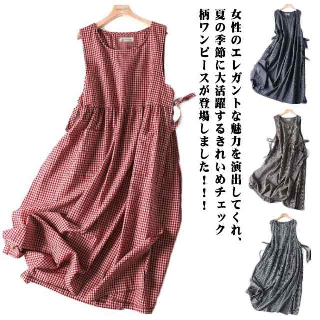 ロングワンピース ノースリーブワンピース チェック柄 ギンガムチェックワンピース ロング丈 ギンガムチェックワンピース ノースリーブ ワンピ ロング ウエストマーク 体型カバー ゆったり ゆるっとワンピース Aライン フレア 定番 春 夏 大きいサイズ カジュアル 30代 40代