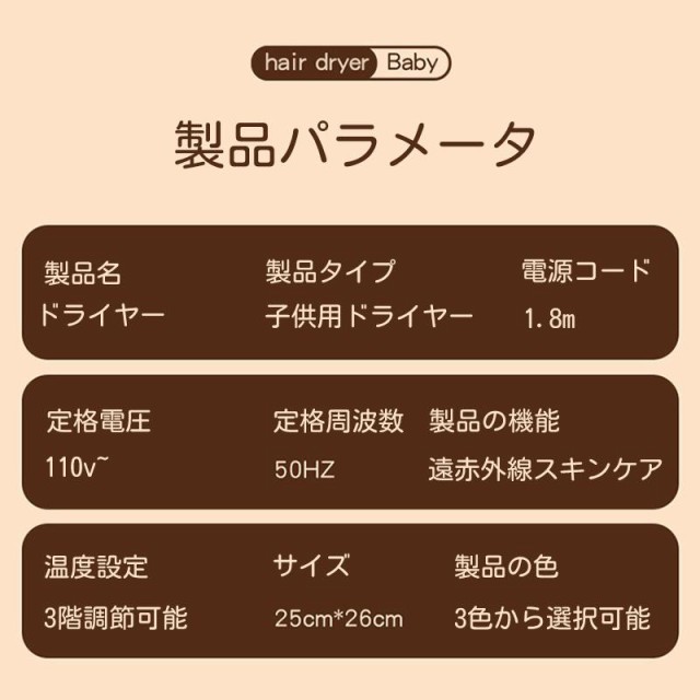 ●お子様のデリケートな髪の毛と肌をケアするママのためのドライヤーです。