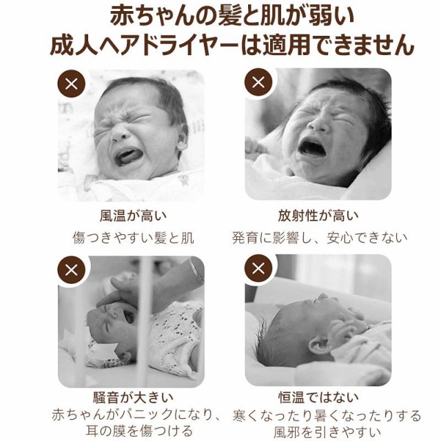 ●一般的なドライヤー(約80dB)と比べて静かなため、赤ちゃんを大きな音で脅かすことなく安心して乾かせます。