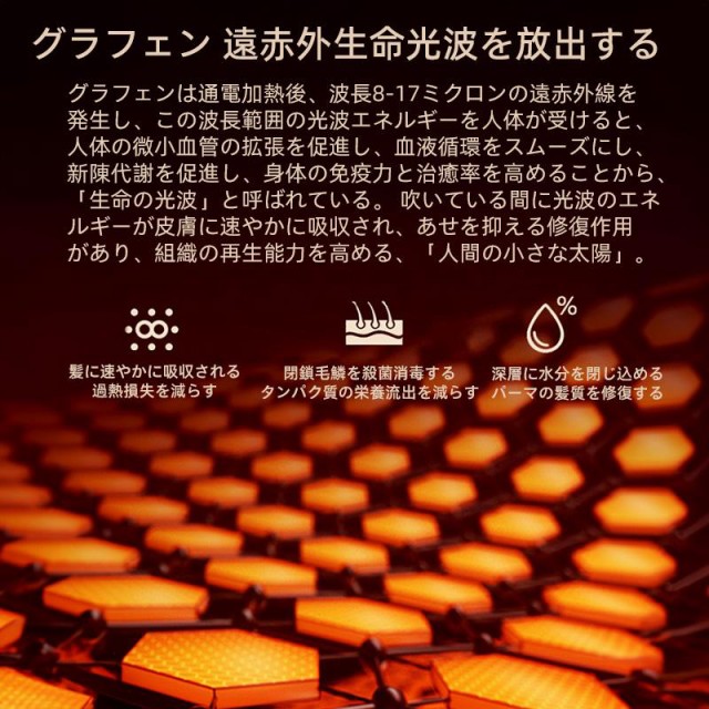 グラフェンは通電加熱後、波長8-17ミクロンの遠赤外線を発生し、この波長範囲の光波エネルギーを人体が受けると、人体の微小血管の拡張を促進し、血液循環をスムーズにし、新陳代謝を促進し、身体の免疫力と治癒率を高めることから、「生命の光波」と呼ばれている。 吹いている間に光波のエネルギーが皮膚に速やかに吸収され、あせを抑える修復作用があり、組織の再生能力を高める、「人間の小さな太陽」。