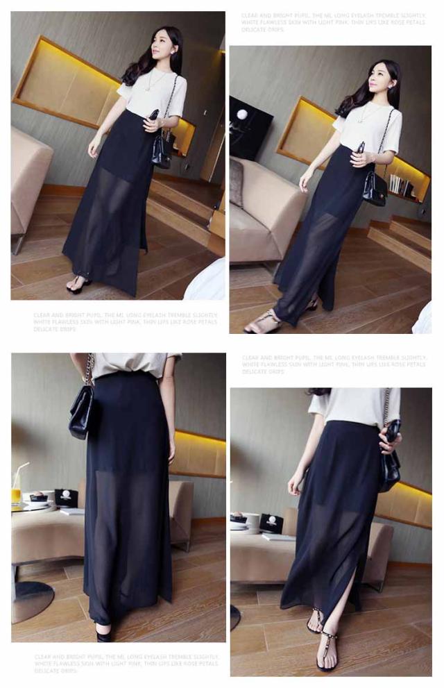 マキシスカート ロングスカート シースルー スリット入りスカート 透け感 レディース 通勤 オフィス 2018春新作