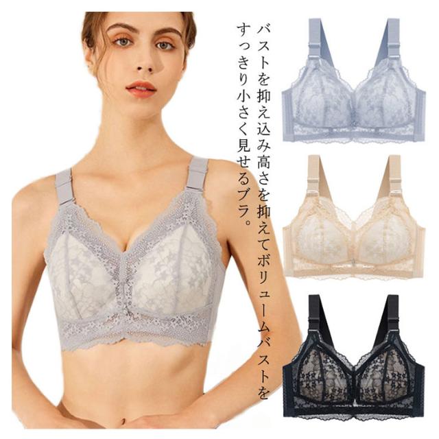 胸を小さく見せるブラ ノンワイヤー ブラジャー 胸が小さく見えるブラ 小さく見せるブラ フルカップ レース 大きいサイズ 脇肉 背中 スッキリ 脇高 設計 補正下着 着痩せ ブラ 大きな胸 小さく見せる ブラジャー さらしブラ 胸を抑えるブラ 垂れ防止 締め付けない 送料無料