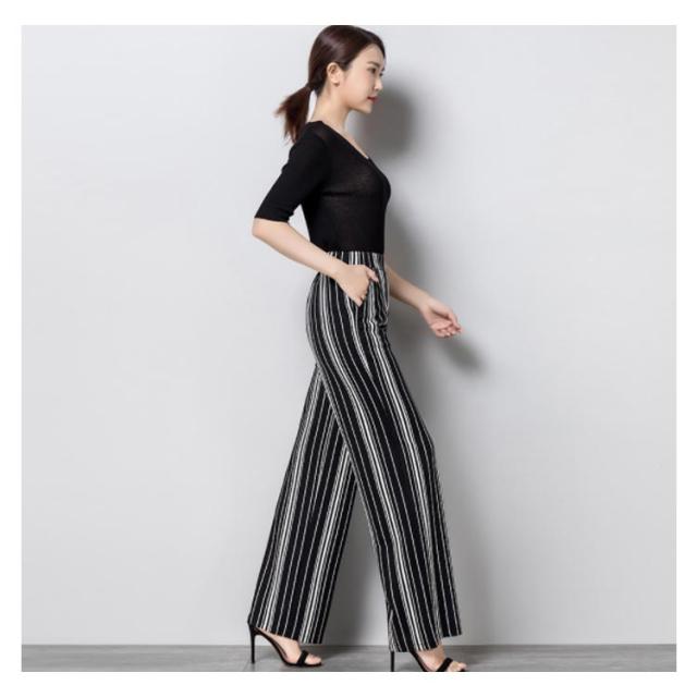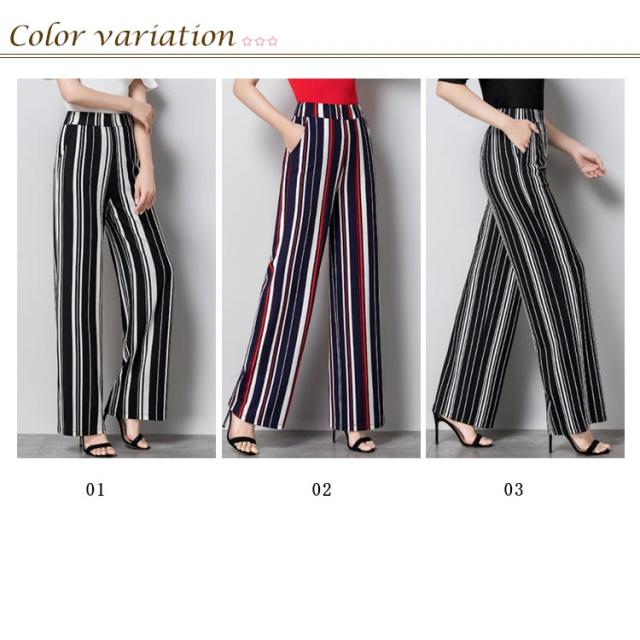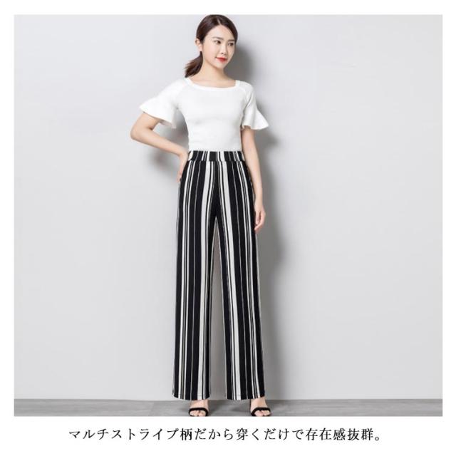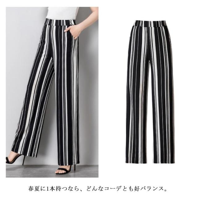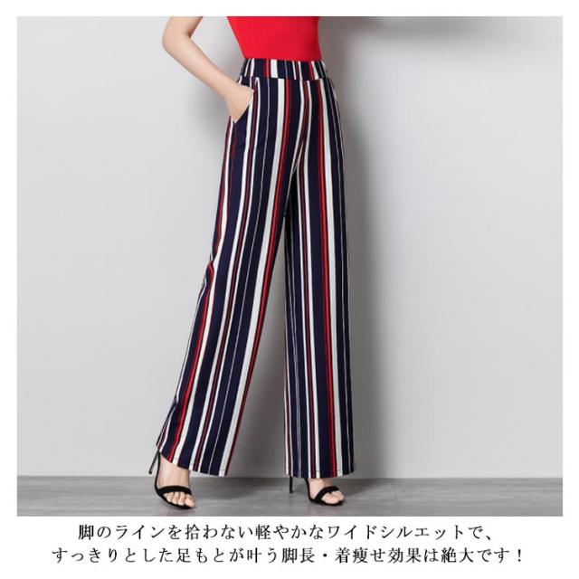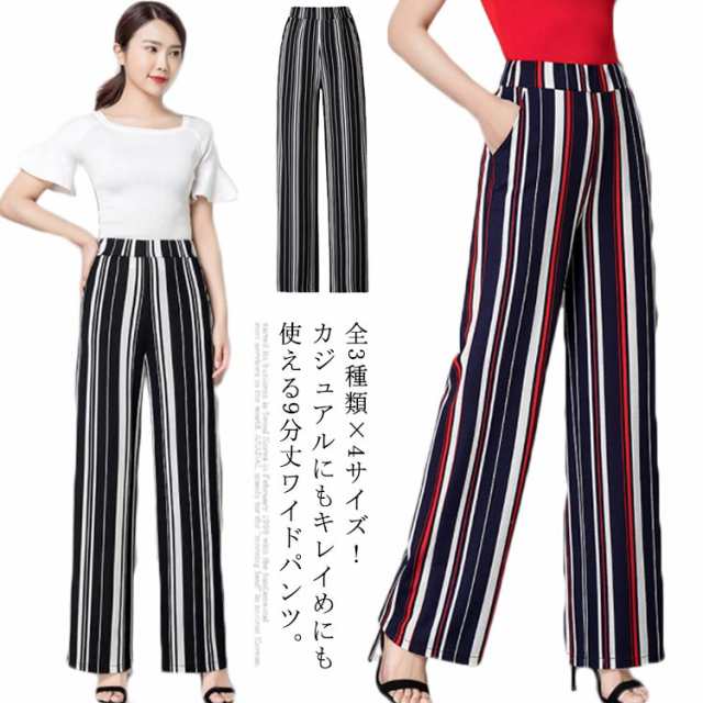 全3種類×4サイズ!夏新作 ストライプ柄ワイドパンツ レディース 長ズボン ワイドパンツ ストレートパンツ 10分丈 ロング丈 ロングパンツ ワイド ストライプ おしゃれ 体型カバー 春夏