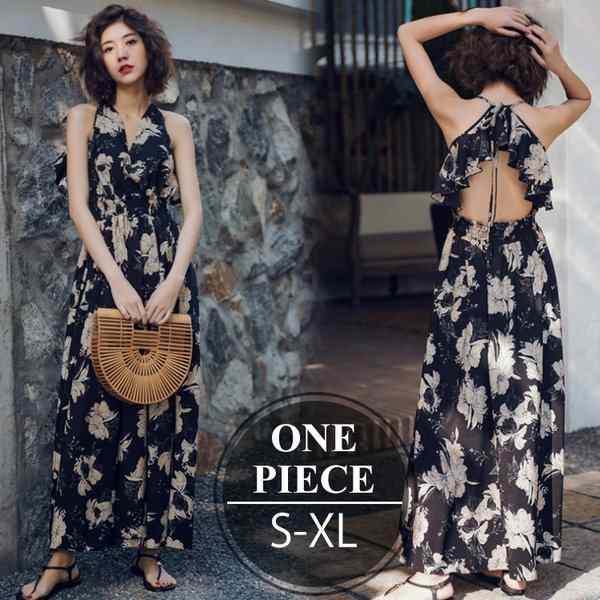 マキシ丈ワンピース 夏 リゾート シフォンワンピース 背中あき ワンピース Aライン 花柄 ロング丈ワンピース 20代30代40代 ポイント消化