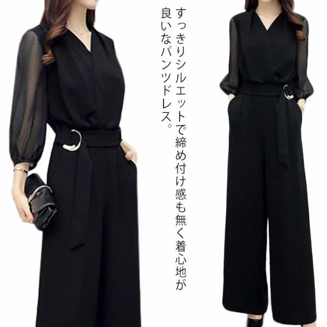 レディース オールインワン フォーマル パンツスタイル ワイドパンツ ドレス ロングパンツ パンツドレス 体型カバー 細見え 結婚式 2次会 パーティードレス 7分袖 大人女子 春秋 キレイめ 送料無料