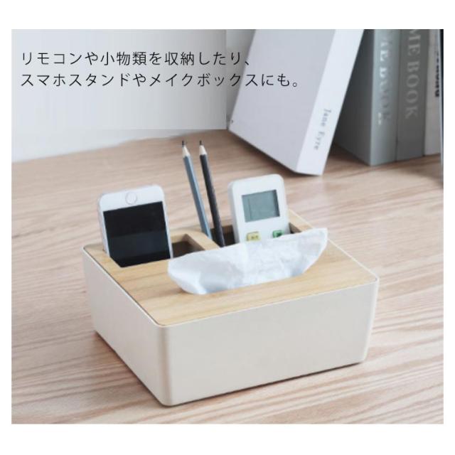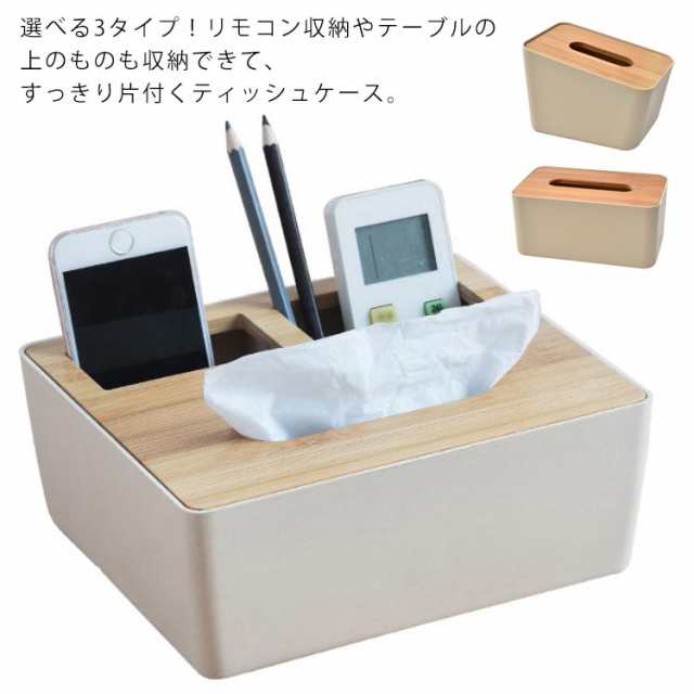 | 選べる3タイプ!リモコン収納やテーブルの上のものも収納できて、すっきり片付くティッシュケース。 竹のふたがついた、おしゃれな北欧風デザイン! ティッシュケースとリモコンケースが一体化でリモコンラックにもなり、リビングやキッチン、寝室などどこにおいてもおしゃれになじむティッシュケースです。 リモコンや小物類を収納したり、スマホスタンドやメイクボックスにも。 テーブルの上のものをすっきり収納できるケースです。 | |