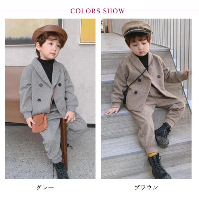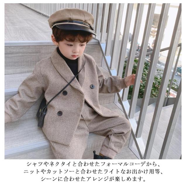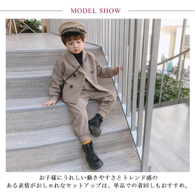 | 秋冬らしい温かみがある素材を使用した男の子用ジャケット&パンツのセットアイテム。 お子様にうれしい動きやすさとトレンド感のある表情がおしゃれなセットアップは、単品での着回しもおすすめ。 シャツやネクタイと合わせたフォーマルコーデから、ニットやカットソーと合わせたライトなお出かけ用等、シーンに合わせたアレンジが楽しめます。 | |
