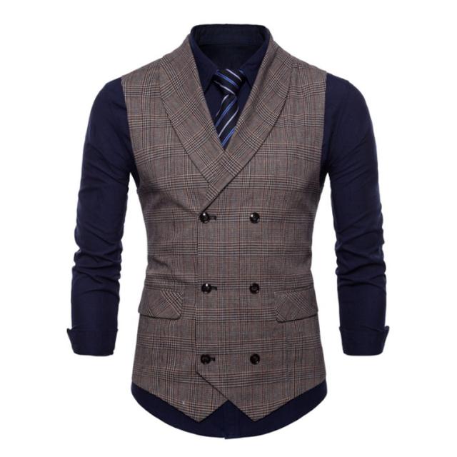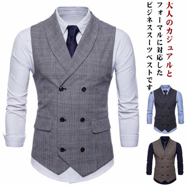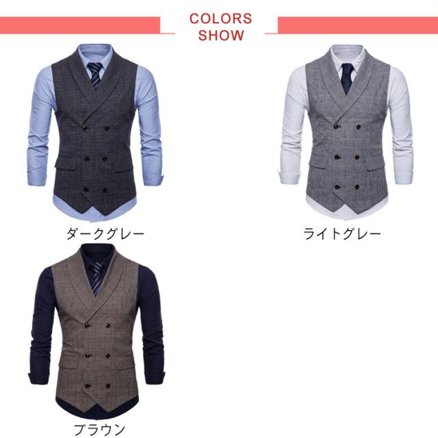 ベスト ジレ メンズ スーツベスト テーラードベスト チェック フォーマル 送料無料 ビジネス ベスト襟付き ダブルボタン Vネック スリム メンズファッション イギリス風 フィット 男性用 結婚式 卒業式 入学式