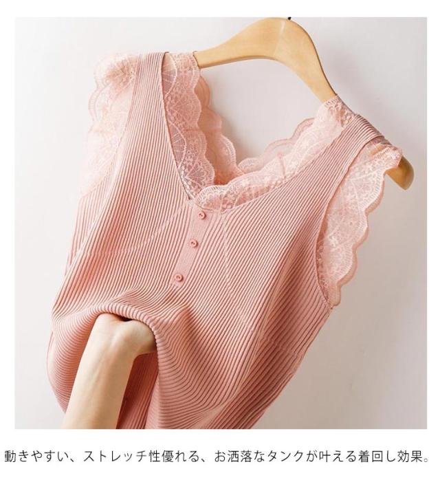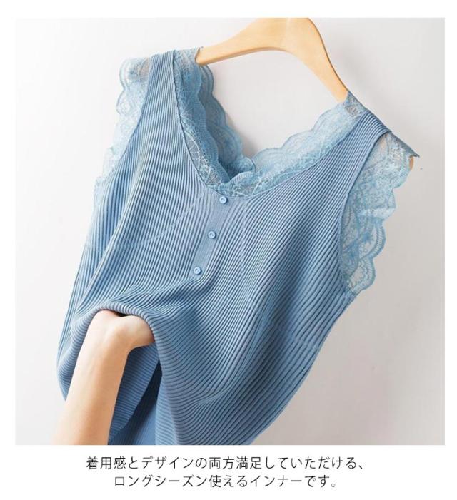 リブインナー 見せる下着 重ね着 トップス タンクトップ ノースリーブ メロウ vネック レディース レイヤード リブ編み S-3XL キャミソール 着?せ ストレッチ レースキャミ フェミニン 見せインナー レース
