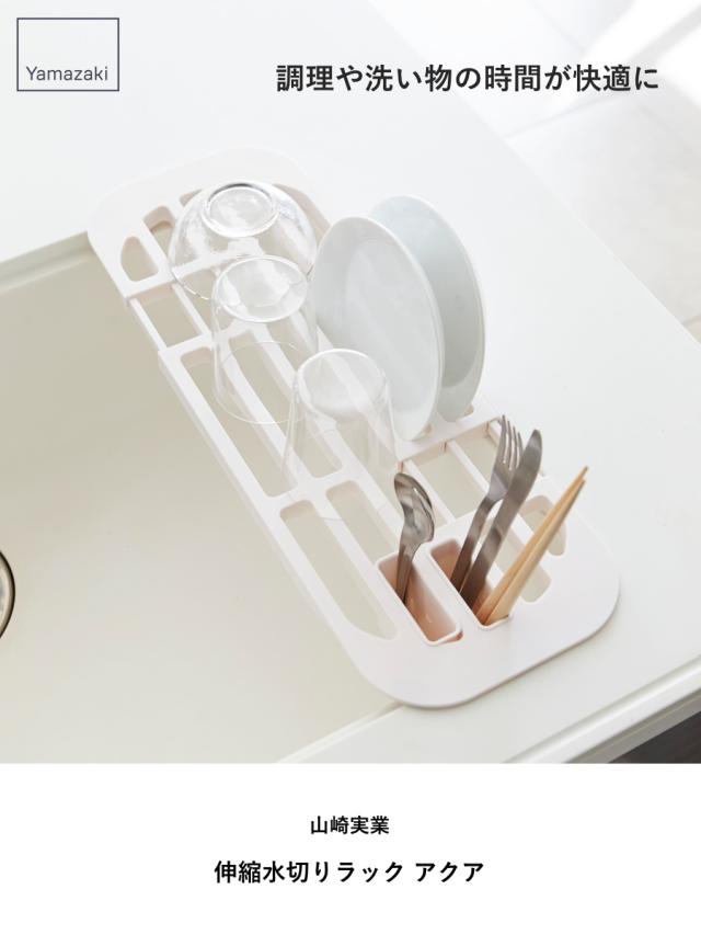 《 yamazaki AQUAシリーズ 山実 YAMAZAKI 山崎 やまじつ シンプル スタイリッシュ aqua 白 ホワイト 水切り 食器洗い 皿洗い 洗い物 シンクサイド シンク周り 水周り キッチン収納 キッチン用品 キッチン雑貨 台所用品 生活雑貨 おすすめ オススメ 便利 役立つ 無地 お洒落 オシャレ 省スペース おしゃれ 伸縮ラック 2895 》