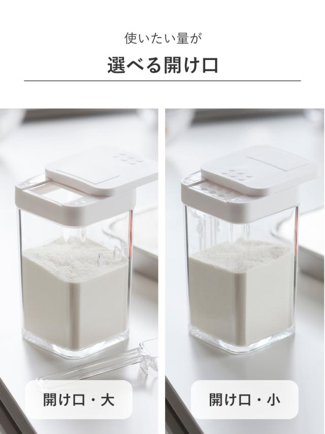 開け口の大きさが大・小あります。大きい口は粒が大きなスパイスや岩塩、小さい口は小麦粉や片栗粉におすすめです。少しずつ振りかけて使えるのでダマになりにくく、シチューのとろみ付けや揚げ物の衣付けに便利です。