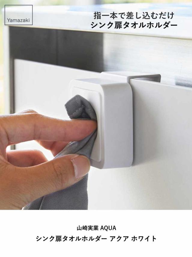 山崎実業 AQUA シンク扉タオルホルダー アクア ホワイト ( 4903208041362 アクアシリーズ タオルホルダー ふきん掛け 吊戸棚 シンク扉 タオルハンガー タオル ホルダー キッチン雑貨 )