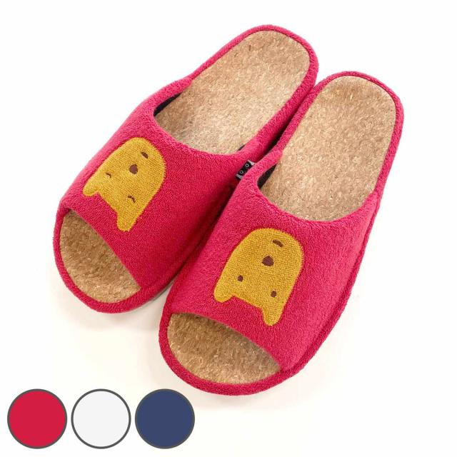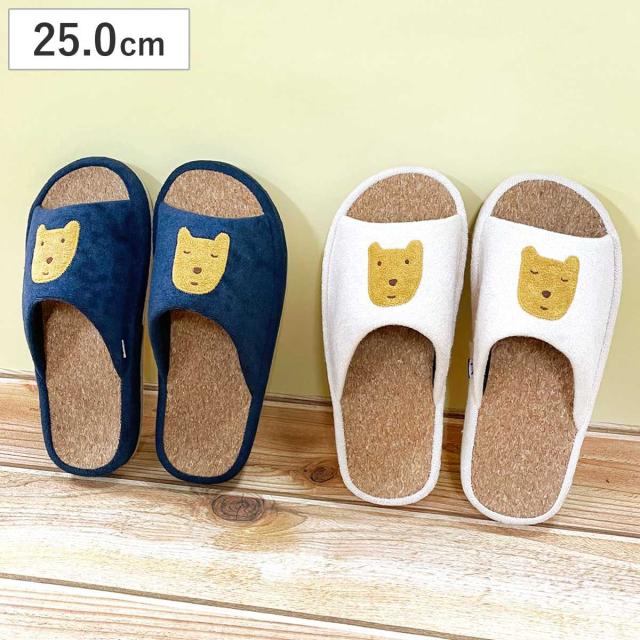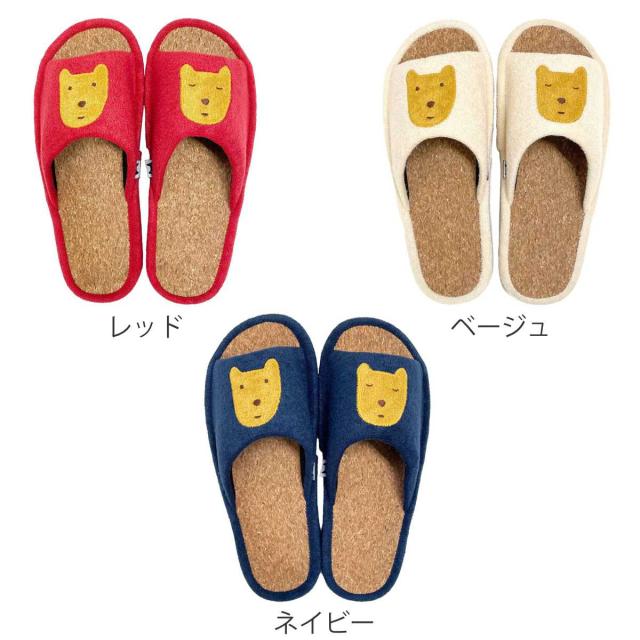 スリッパ のほほん M 約23.0cm ( 室内 レディース マタノアツコ コルクスリッパ パイル生地 アップリケ 刺繍 前開き ルームスリッパ トイレ インテリア雑貨 自宅 室内用 静音 くま )