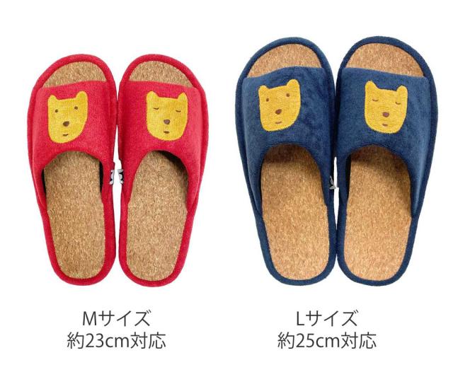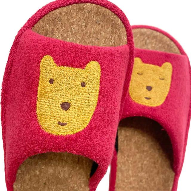 ●手触りの良いパイル生地にクマのアップリケがかわいいコルクスリッパM(約23cm)です。